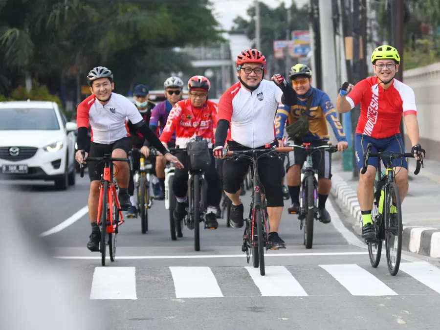 Direktur Consumer PT Bank Tabungan Negara (Persero) Tbk Hirwandi Gafar, didampingi Ketua Batara Cylling Community (BCC) Bank BTN Heveanto BR melepas lebih dari 100 pecinta sepeda BTN di Jakarta, Minggu, 21 Agustus 2022.) Dalam rangka HUT Ke77 Kemerdekaan Republik Indonesia, para pecinta sepeda Bank BTN yang tergabung dalam BTN Cycling Community (BCC) menyelenggarakan gowes santai menyusuri 77 KM di wilayah DKI dengan sejumlah lokasi perkotaan dari kantor pusat BTN di Harmoni menuju PIK 2, Kelapa Gading, Cawang, Kuningan dan berakhir finish di halaman kantor pusat Bank BTN. Melalui kegiatan bersepeda tersebut diharapkan para BTNers selalu sehat dan bugar untuk lebih bersemangat dalam mendukung perseroan berkinerja lebih baik.