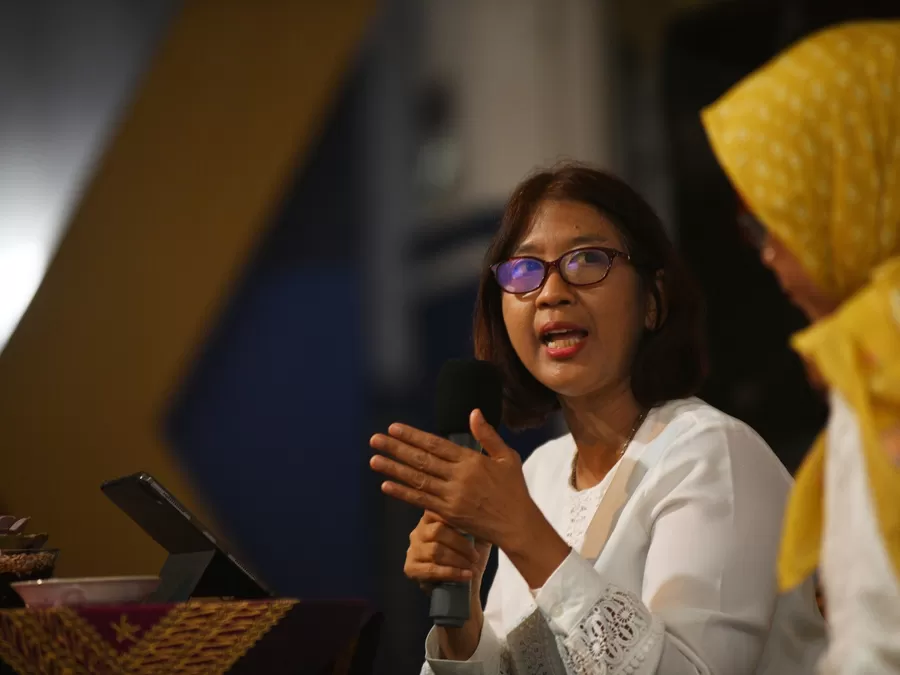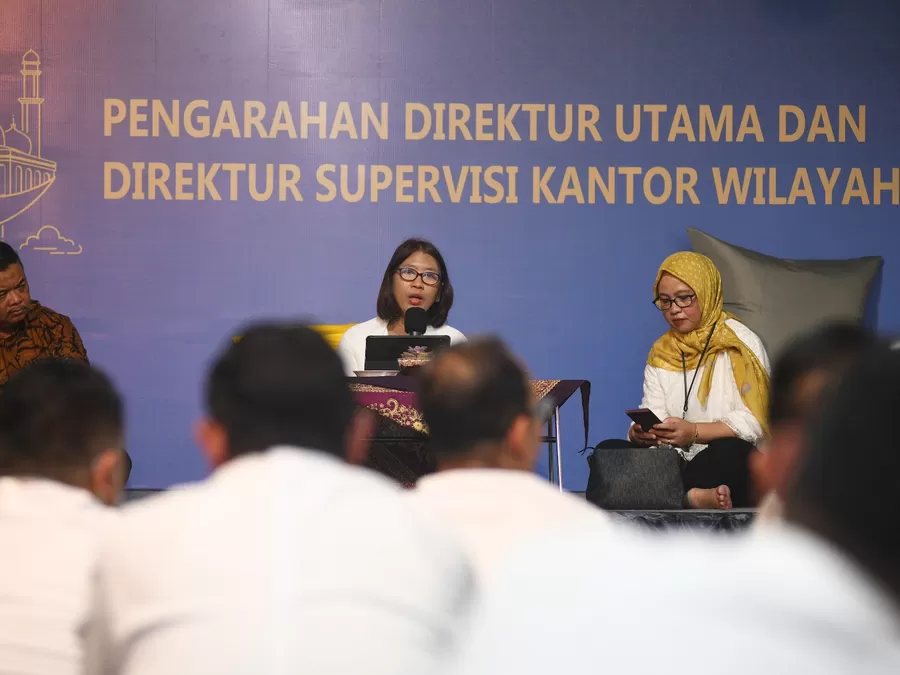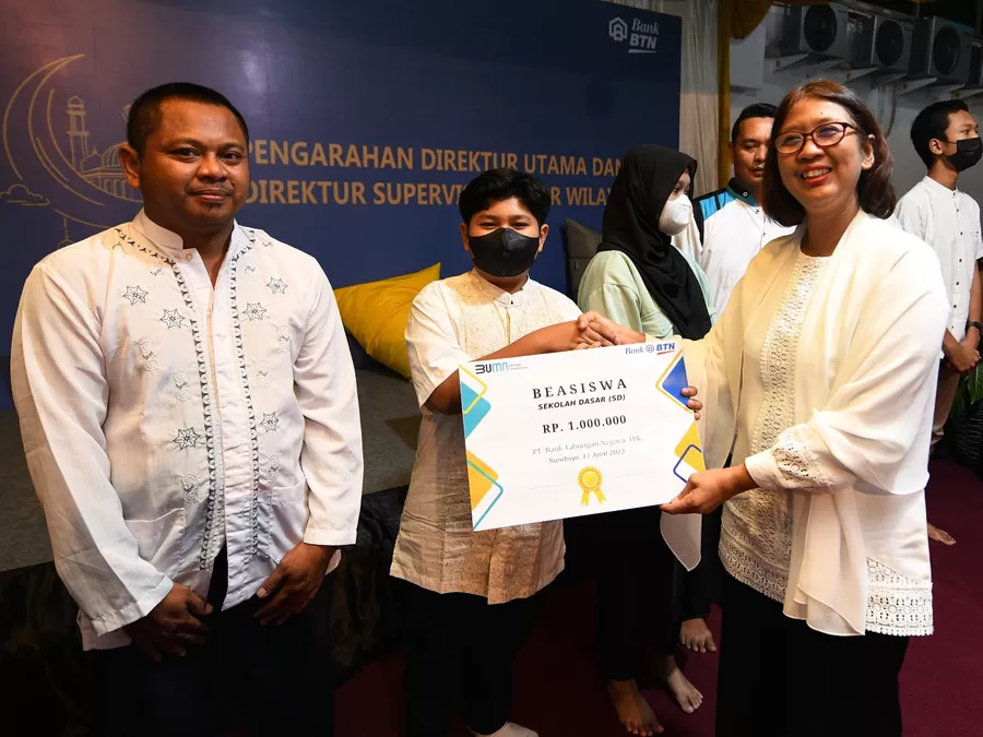 Direktur Assets Management Bank BTN Elisabeth Novie Riswanti menyampaikan presentasi kepada para karyawan Kantor Wilayah 3 Bank BTN pada acara Safari Ramadan 1444 H di Surabaya, Selasa, 11 April 2023. Selama Bulan Ramadan ini Direksi Bank BTN menggelar acara Safari Ramadan ke Kantor Wilayah Bank BTN di seluruh Indonesia. Dalam acara Safari Ramadan tersebut, selain Buka Bersama dengan karyawan, Bank BTN juga memberikan bantuan beasiswa kepada Putra/Putri berprestasi dari karyawan Tenaga Ahli Daya (TAD).
